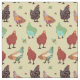 Cores ricas e diversas galinhas do divertimento nos perderes para um tecido lunático com galinhas.