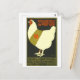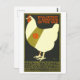 Este postal é uma reprodução de um poster de guerra vintage mostrando uma galinha em uma faixa militar. O texto diz: "Inscrito durante a guerra. Ajude a Coleção Nacional de Ovos para os feridos."