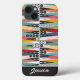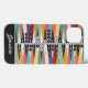 Essa capa de telefone personalizada de gamão tem uma design de idade atômica retrorreflectora com muitas cores de vintagem, símbolos atômicos e de explosão usados nas peças de jogos. Um padrão super divertido para qualquer um que adora retro meios séculos modernos e o jogo do gamão. O padrão neste caso pode ser pequeno ou maior.