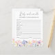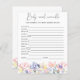 O convite para chás de fraldas apresenta lindas flores silvestres de aquarela e um roteiro de caligrafia que é perfeito para chás de fraldas de primavera, verão ou outono. Bebê na flor! Respostas: CRAVINGS, CRYING, PACIFIER, FRASCO, LUZ NOTURNA, LULLABY, STROLLER, EPIDURAL, BURP, ALTA CADEIRA, SACO DE FRALDA, SWADDLE