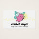 Fada de animais lindos ou monstros com gancho mágico de crochê neste cartão de visita para artesanatos de fios crochetados, personalizada com sua escolha de esquema de cores e fontes, perfeita para venda de presentes e artesanatos.