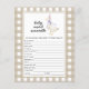 "Um novo ganso de bobo está prestes a ficar solto". Celebrar com esta festa de chá de fraldas de ganso fofo! Um ganso de aquarela no chapéu de aniversário. Gaiola castanha. Respostas: CRAVINGS, CRYING, PACIFIER, FRASCO, LUZ NOTURNA, LULLABY, STROLLER, EPIDURAL, BURP, ALTA CADEIRA, SACO DE FRALDA, SWADDLE