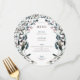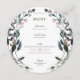 Este elegante e chic menu de casamento mostra os florais de aquarela pintados em tons azuis e cor-de-rosa e vem com um padrão floral correspondente no verso. Personalize-o com seu próprio texto usando os modelos fornecidos. A cor de fundo está definida como branca, e coordena-se com a nossa coleção de casamento "Garden Crest". Mas fique à vontade para escolher uma nova cor de preenchimento para combiná-la com o tema do seu casamento. Clique no botão "personalizar" para deixar espaço para mais ou menos itens ou aumentar/diminuir o tamanho da fonte, conforme necessário. Este menu circular parece excelente colocado no dentro da placa de janto de cada convidado.