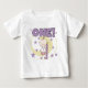 Camisetas de aniversário de primeira infância, festas, cartas, autocolantes, ímanes, bolsas e outros itens de primeiro aniversário com uma menina fofa numa fralda, uma vela de solteiro grande e texto com a letra UM!