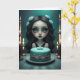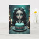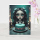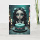 Garota bonita com bolo de aniversário, velas, pronta para uma festa! estilo, bonitinha caricatura de gótico