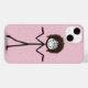 Garota picante com óculos e cabelo bobinado em um padrão de bolinhas rosa e branca. O plano de fundo pode ser alterado.