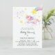 O papel neste belo convite para chás de fraldas é grosso e liso, e as cores são tão vibrantes e claras. O cartão é adorado com uma ilustração caprichosa de um bebê vestindo um pequeno terno e chapéu, e o convite lê "É uma Garota!" em uma fonte elegante. O dentro da placa é vazio, perfeito para adicionar sua própria mensagem.