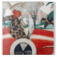 Esta design apresenta uma pintura da artista dinamarquesa Gerda Wegener (1886-1940). Mostra uma moça na moda vestindo um casaco de na moda e dirigindo luvas em um carro esportivo vermelho. Ao lado dela, no automóvel vintage, está um cachorro branco. A mulher e seu cachorro de estimação estão olhando para a frente de hetero. Há árvores estilizadas no fundo, e há também um par de cavaleiros passando. O trabalho de arte é pintado no estilo art-deco, e foi originalmente produzido em 1927.