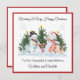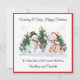 Este cartão de Natal é adequado para gêmeos no seu primeiro, segundo ou terceiro Natal. A design inclui um contorno vermelho, flocos de neve azuis-claros, árvores de Natal com aquarela, canas doces, presentes e bonecos gêmeos.