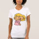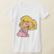 Uma garotinha de joelhos rezando com um sorriso no rosto. Esta design parece muito eficaz nesta Camiseta das Mulheres