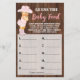 Cowgirl rosa adivinha o cartão de jogo do Chá de fraldas da Comida do bebê. Mude a redação para o design. Para alterações adicionais (cor da fonte, estilo da fonte, remover ou mover elementos), clique em personalizar, role para baixo e clique no link "Editar usando a ferramenta Design". ** O fundo da madeira é incorporado ao design para ser impresso em papel branco. ** - Verifique na coleção todos os designs correspondentes - HOW TO PLAY: Tome 10 comidas diferentes para os convidados para provar e adivinhar o sabor de cada um. Convidados anotam seus palpites de cada sabor e a pessoa com as respostas mais corretas ganha!