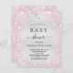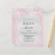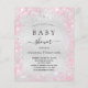 Um chá de fraldas moderno, elegante, celebrando uma menina. Fundo metálico de aspecto fino prateado decorado com poeira brilhante, a tinta e falso. Personalize e adicione um nome e detalhes da parte. Letras pretas coloridas.