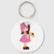 Uma garota de pé rosa segurando uma flor. Esta design parece realmente eficaz nestes Chaveiro