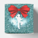 Cowboy e cowgirl topando silhuetas em ornamentos azuis com arcos vermelhos em presentes de férias ou caixas de favores. O fundo é a luz azul FAUX. Sem brilho real. Veja outros itens de Feriado de Red Barn na Loja de Dias de Rodeio.
