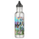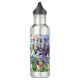 A vibrant artistic design captures scenes of simplified characters from the exuberant life in Africa, showcasing dancing figures of musicians, drummers, farmers, and shepherds. The colors intermingle like dancing waves, with hues of blue, orange, violet, and green creating a mesmerizing spectacle. The depiction portrays the joyful essence of life in the rich and diverse African continent, with a touch of brown tones adding depth to the composition.