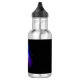 Água-viva grande, azul, desenhada artisticamente, brilhante, brilhante, com longos tentáculos sobre fundo preto com bioluminescência roxa. Água-viva luminosa.