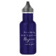 Garrafa de água edificante "Este é o dia que o Senhor fez. Alegrai-vos e exultai". Coloque bênçãos em sua casa e seja inspirado e encorajado toda vez que olhar e beber dela. Garrafa de água azul com texto em letra cursiva branca.