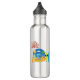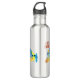 Alô, cena de praia de Verão com banana segurando um prato na praia e um castelo de areia.