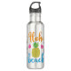 Uma Garrafa De Água Com Uma Tipografia Colorida Sobre O Tema Da Praia Aloha.