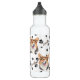 Esta garrafa d'água apresenta o retrato de um artista de um lindo cão Cardigan Welsh Corgi. A imagem é repetida em torno do perímetro da garrafa e colocada sobre um fundo aspergido com estampas pretas. Seu nome ou outro texto em castanho também se repete em volta do perímetro.
