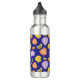 Tenha sua bebida favorita em estilo com esta garrafa de água de aço inoxidável decorada com um padrão colorido de conchas vermelhas, amarelas e violetas em aquarela, sobre fundo azul. Escolha entre uma variedade de cores disponíveis, em dois tamanhos. Personalize adicionando seu monograma.