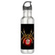 Aranha mecânica, com pá-pá de ouro, engrenagens de latão e uma lâmpada de vidro vermelha sobre fundo preto. Estilo Steampunk.