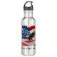 Esta garrafa de água de aço inoxidável tem um design com uma águia careca e uma bandeira americana no fundo. Esta garrafa de água é uma forma excelente de mostrar o seu patriotismo. Personalize esta garrafa de água adicionando o seu próprio texto.