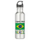 É a bandeira brasileira em uma garrafa de água de aço inoxidável. Design também apresenta o nome BRAZIL estirado nas mesmas cores que a bandeira. Por cima, um lugar para um nome personalizar para você mesmo ou personalizar para um presente.