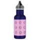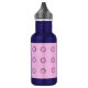 A pintura de bolinhas roxas e cor-de-rosa em camadas em fundo de rosa claro é impressa em garrafas de água personalizadas.