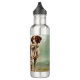 Cão caçador com pássaro na boca. Desenho colorido da safra. Retriever com pele de caçador colorida