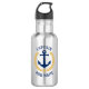 Uma garrafa de água de aço inoxidável personalizada com o seu título Capitão ou outro título e o nome do barco, nome da família ou outro texto desejado. Apresentando uma âncora náutica, folhas de ouro e emblema de estrela, desenhada por medida. Faz um presente excelente para qualquer ocasião.