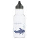 É fácil manter sua criança hidratada durante o verão ou durante todo o ano na escola, obrigados para esta divertida garrafa de água reutilizável. Ele apresenta um tubarão de desenho animado. Personalize-o com o nome do seu filho para que seja facilmente reconhecível e não se perca! Procure por uma lanchonete. ©ArianeC Ilustrações - Todos os direitos reservados