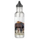 Design fotográfico de um rebanho de cavalos à espera de ser alimentado.