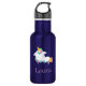 Um unicórnio encantador cumprimenta você com esta garrafa de água de aço inoxidável personalizada. Disponível em uma variedade de cores diferentes, este design apresenta um unicórnio adormecido com o seu nome escrito em rosa claro. A garrafa de água é uma bela cor azul. Um tipo de design, personalize sua garrafa de água hoje! Unicórnio: design Prettygrafik (https://www.etsy.com/shop/Prettygrafikdesign)