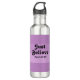 Esta garrafa de água fofa apresenta listras roxas juntamente com um verso Bíblia do Evangelho de Mark.