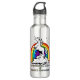 uma garrafa de água esrm com um arco-íris e um unicórnio nela