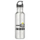 Cinza prateada, Garrafa Metálica de Aço Inoxidável, Preta e Branca, Personalizada, com um nome simples, esportivo e monograma moderno de raquete tênis num tipo clássico de letra desportiva, com um fundo sutil de rede tênis.