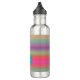Uma garrafa de água personalizada com um padrão de risca horizontal colorido e um monograma inicial de solteiro no centro.