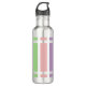 Padrão geométrico linear, retangular, listrado, de tons de arco-íris pastel azuis, laranja, verde, rosa, roxo, vermelho e amarelo.
