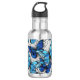 Composição vertical de borboletas de morfo realistas, azuis e brancas sobre fundo texturizado de cinzas. Borboleta azul Morpho.
