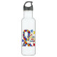 Uma quebra-cabeça que diz 'Eu adoro uma criança com autismo', peças quebra-cabeça de azul, vermelho e amarelo e a fita de reconhecimento do autismo em T-shirts, capuzes, canecas, ímanes, cartões, adesivos, bolsas, chaveiros, botões e outros itens.
