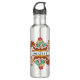 Garrafa de água personalizada com um monte de cupcakes deliciosos com espirais e cerejas e glacé delicioso. Ilustrado em um estilo retrô clássico. As cores incluem verde retrô, vermelho, azul e creme.