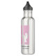 A stainless steel water bottle with silhouettes of ballerinas on pink and lavender rectangles. The quote by Martha Graham along the bottom edge - Dance is the Hidden Language of the Soul.