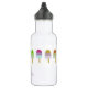 Garrafa de água com ilustração de picolé e texto personalizável.