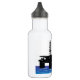 As plataformas petrolíferas são construções de vista impressionantes e mostras deste design um par grandes plataformas petrolíferas para fora no oceano. Há uma plataforma petrolífera no primeiro plano com segundo no fundo. Este as plataformas petrolíferas projetam os olhares grandes nesta garrafa de água. Aperfeiçoe para o senhor mesmo ou como um presente