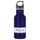 O frasco de água do Pexagon é mostrado com um exemplo de nome personalizado, clique em personalizar editar e mude o nome para o seu. Mostrado em azul.