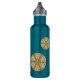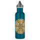Uma mandala concêntrica, tipo rendas, em azul escuro, com pontos brilhantes, azuis e dourados, girados entre as camadas e um brilhante círculo de gradação de explosão solar atrás faz um design divertido que traz à mente um céu noturno estrelado e um dia ensolarado brilhante com uma imagem.