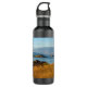 Uma bela luz noturna sobre a baía de Stykkisholmur, na Islândia, faz uma linda imagem para esta garrafa de água