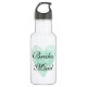 Garrafas de água personalizadas para casamento com coração em verde menta. Símbolo de amor com pintura em aquarela elegante e tipografia caligrafada estilosa. Design romântico e sofisticado para chá de noiva rústico country chic ou recepção de casamento com tema de praia. Personalizável com nome, citação ou título. Crie a sua para a futura noiva e para a comitiva da noiva; daminhas de honra, madrinha, madrinha casada, mãe da noiva, mãe do noivo, menina das flores, etc. Também é um presente de agradecimento sofisticado para convidados ou para um fim de semana de garotas de solteira.