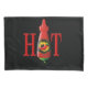 Letras HOT com o O feito com uma garrafa de molho de pimenta.